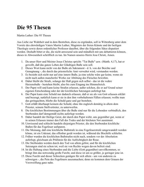 Kinderzeitmaschine Ç Luthers 95 Thesen from www.kinderzeitmaschine.de Maybe you would like to learn more about one of these? We did not find results for: Check spelling or type a new query.